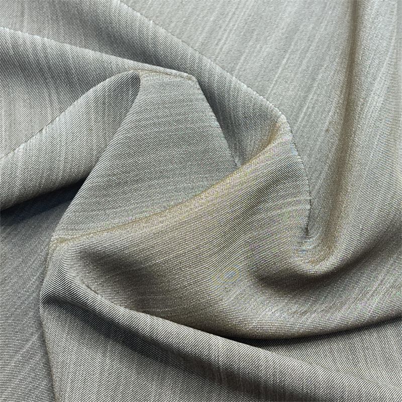 This fabric is woven from high elasticity polyester yarn, and after dyeing and other treatments, it has a smooth hand feel and good drape. It is suitable for making women's suits, dresses, etc